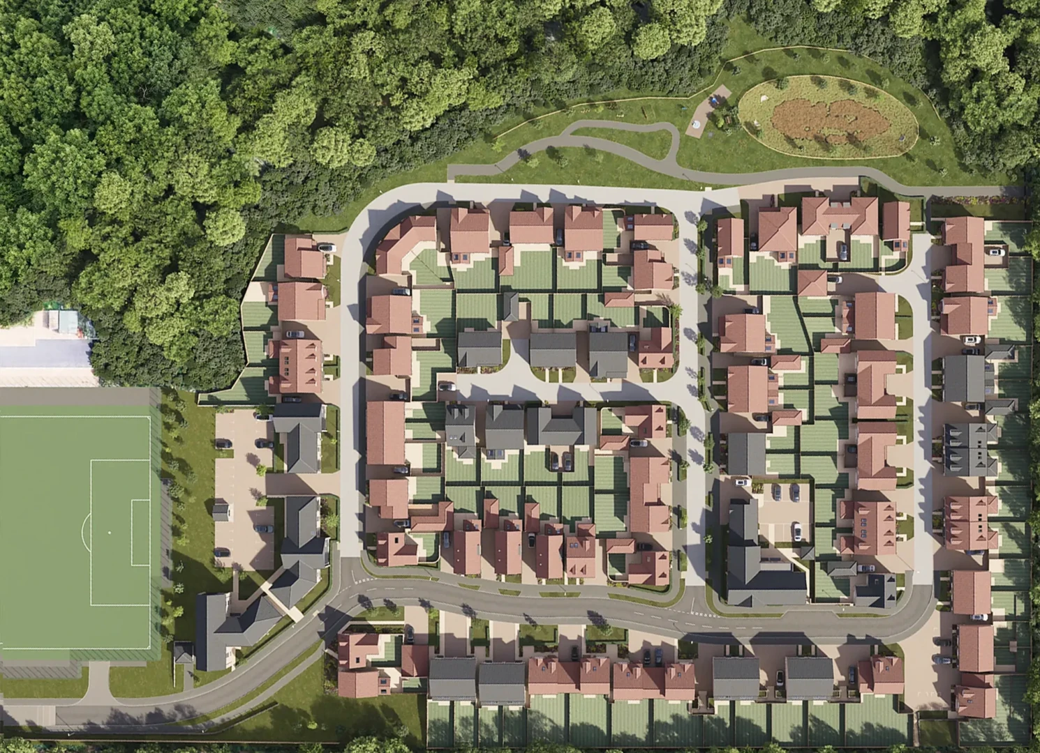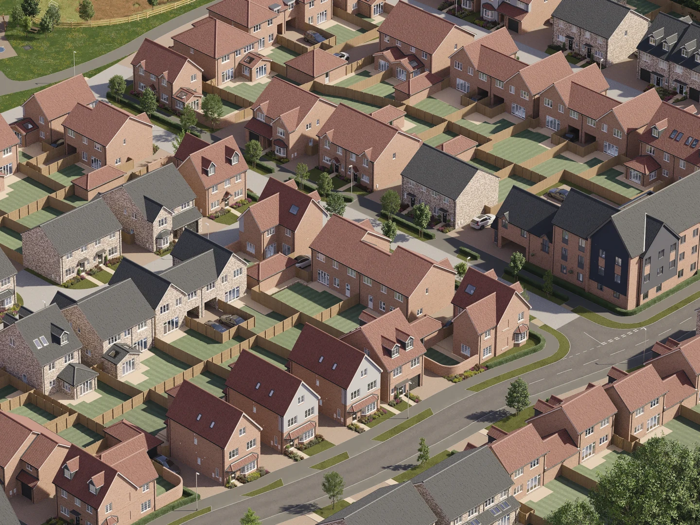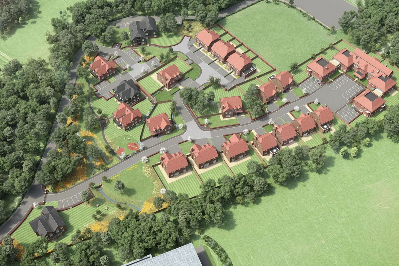 A strong 3D site plan is clean, easy to read, and buyer friendly. It should clearly show plot arrangement, access roads, parking, green space, and key features without clutter. The goal is to reduce buyer uncertainty and help sales teams explain the development quickly. We visualise 3D site plans to balance accuracy with clarity so they work as a genuine sales tool, not just a pretty image.
