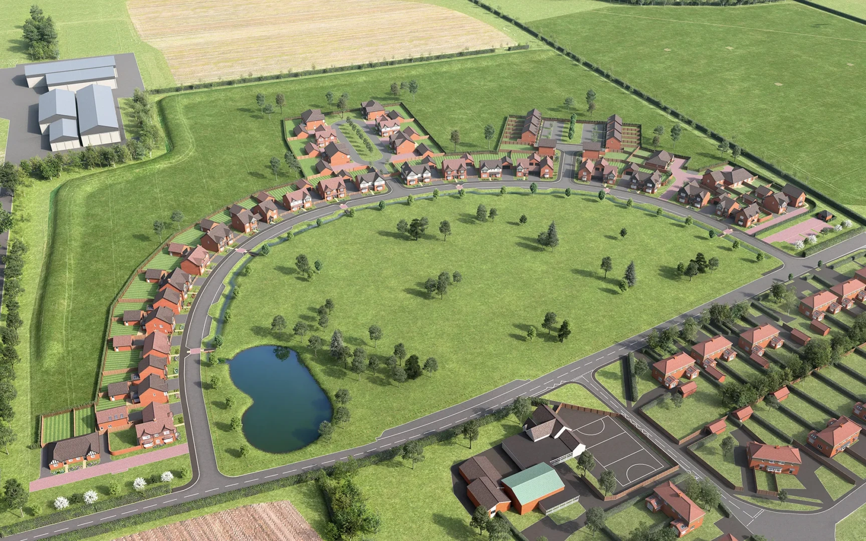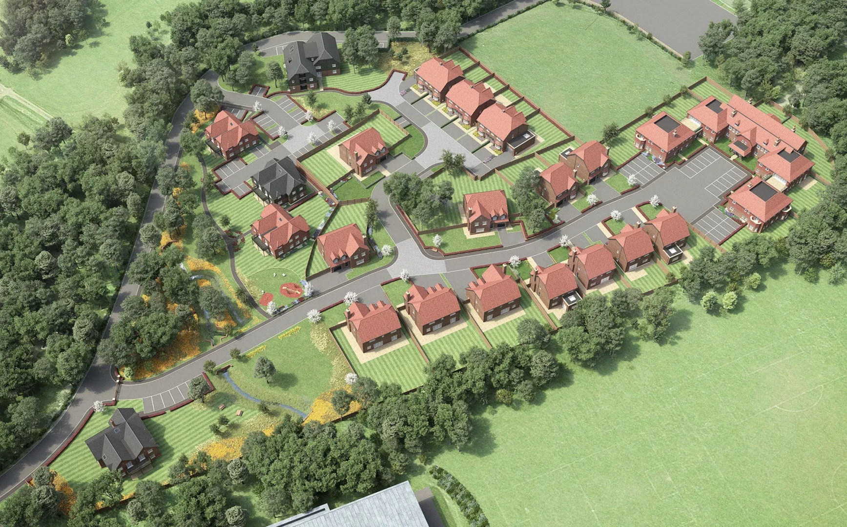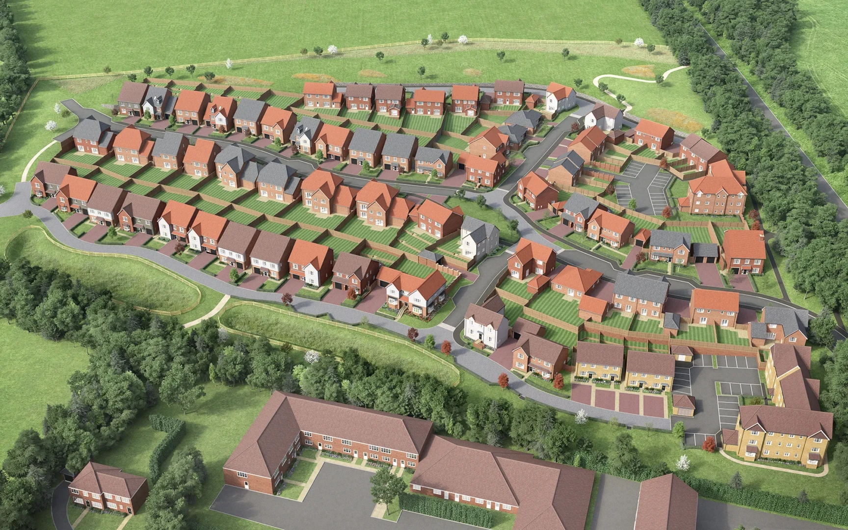 A strong 3D site plan is clean, easy to read, and buyer friendly. It should clearly show plot arrangement, access roads, parking, green space, and key features without clutter. The goal is to reduce buyer uncertainty and help sales teams explain the development quickly. We visualise 3D site plans to balance accuracy with clarity so they work as a genuine sales tool, not just a pretty image.