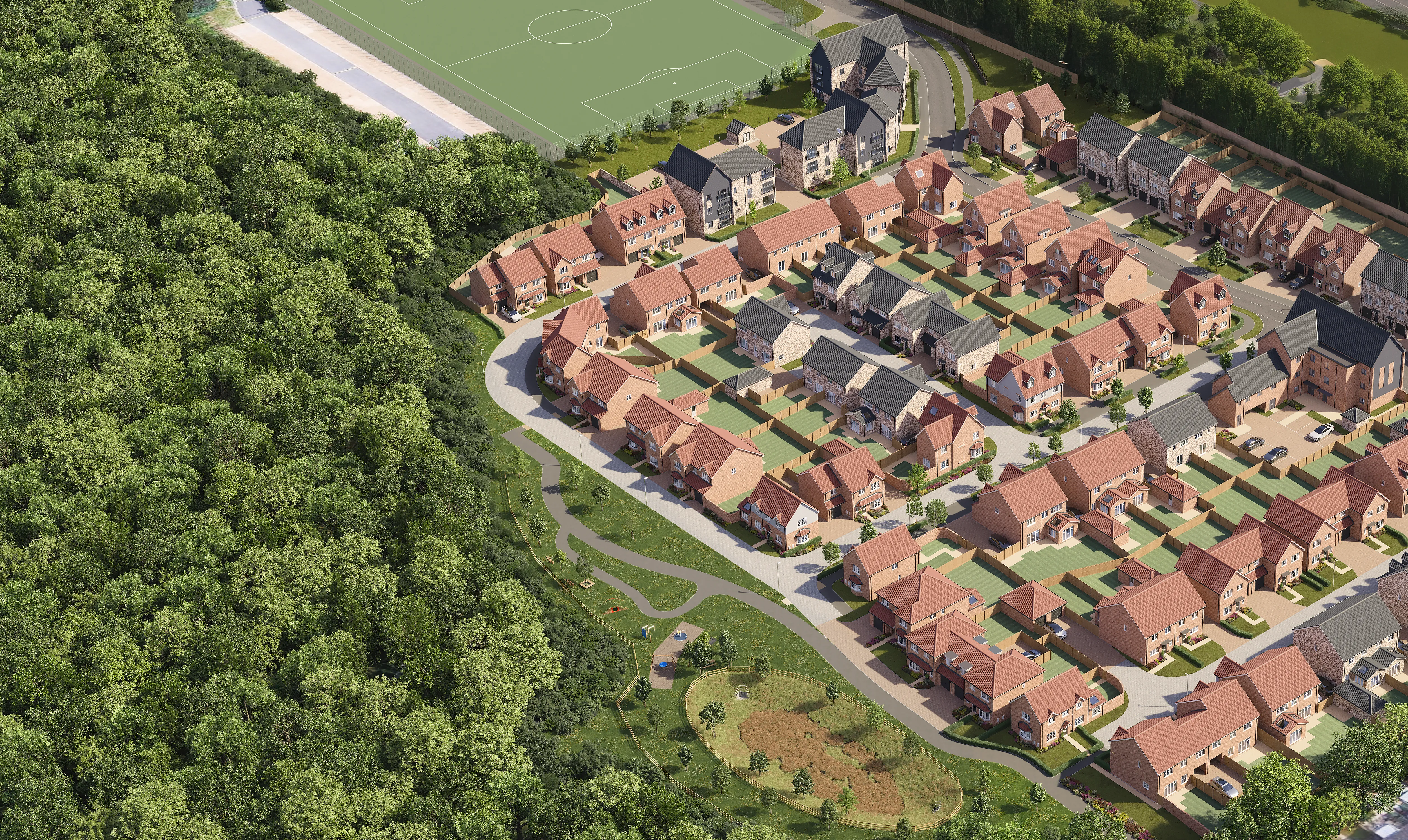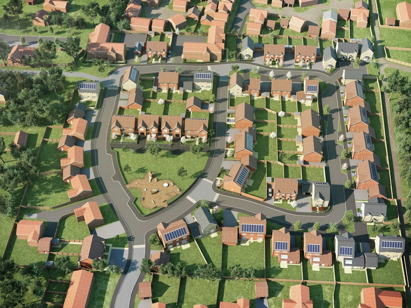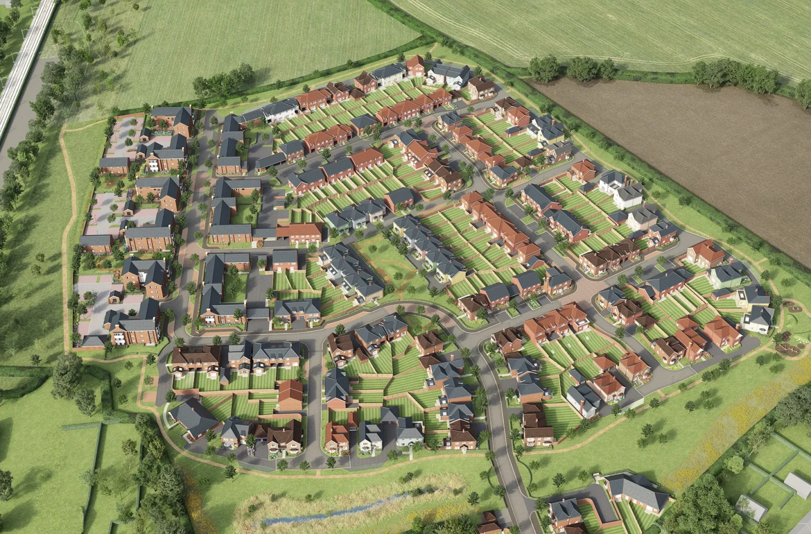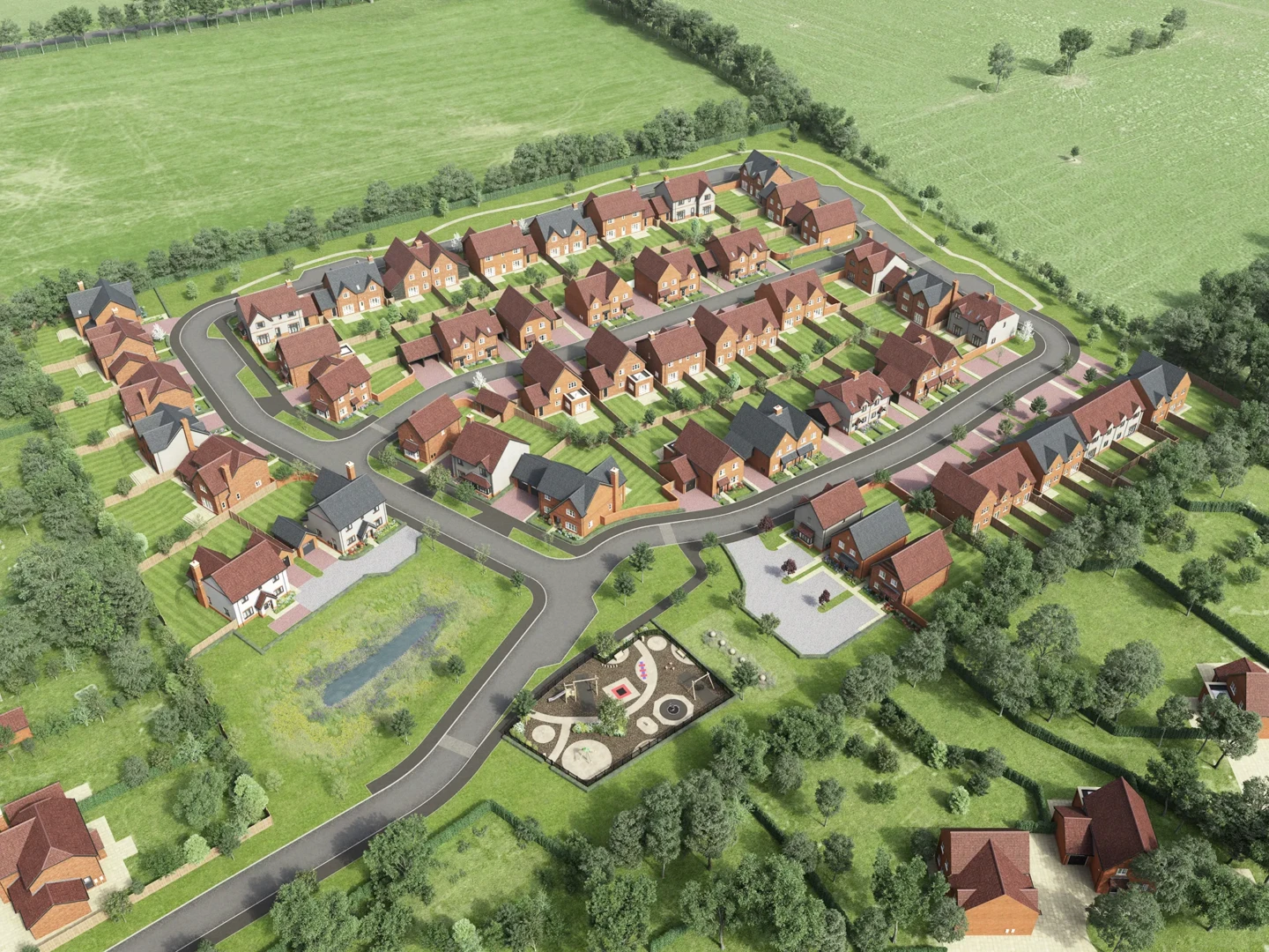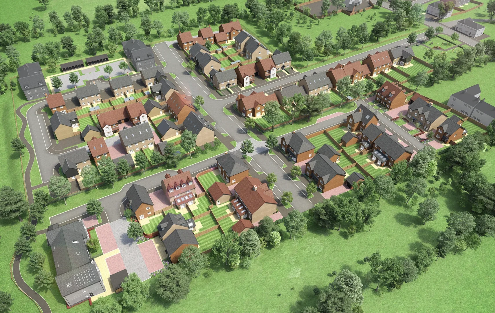 Our 3D aerial site plan CGIs give buyers a clear overview of your development, so they can quickly understand plot positions, road layouts, parking and green space. Built directly from your CAD drawings and specification, each visual accurately reflects house types, change in ground levels, landscaping and key site features, so your sales team can explain the site with confidence.